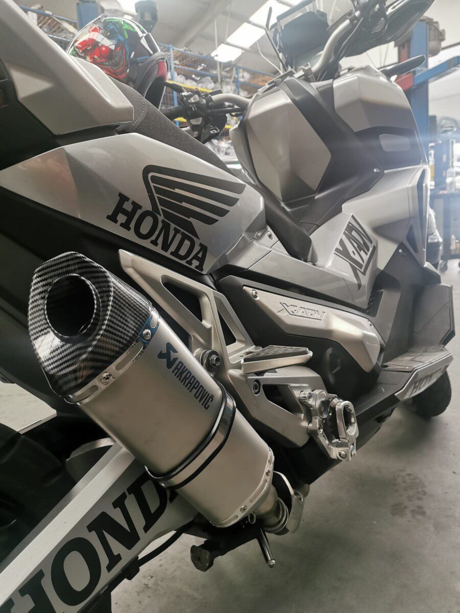Aplicação de ponteiras Akrapovic, em Honda 750 X ADV
