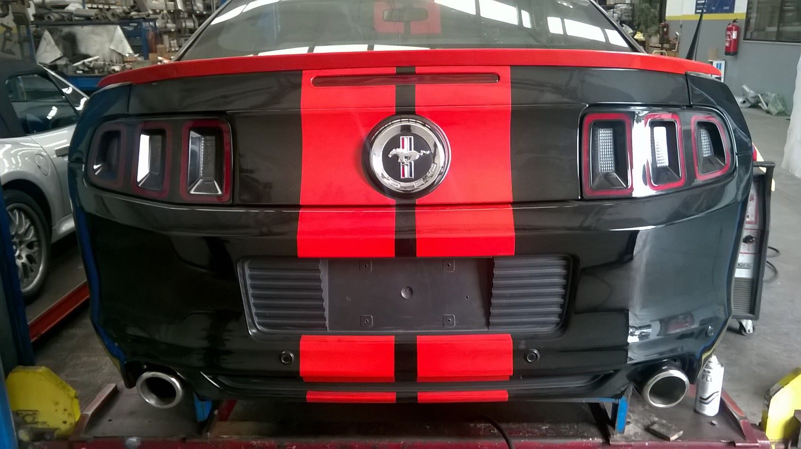Aplicación de 2 silenciadores de acero inoxidable en Mustang 2014