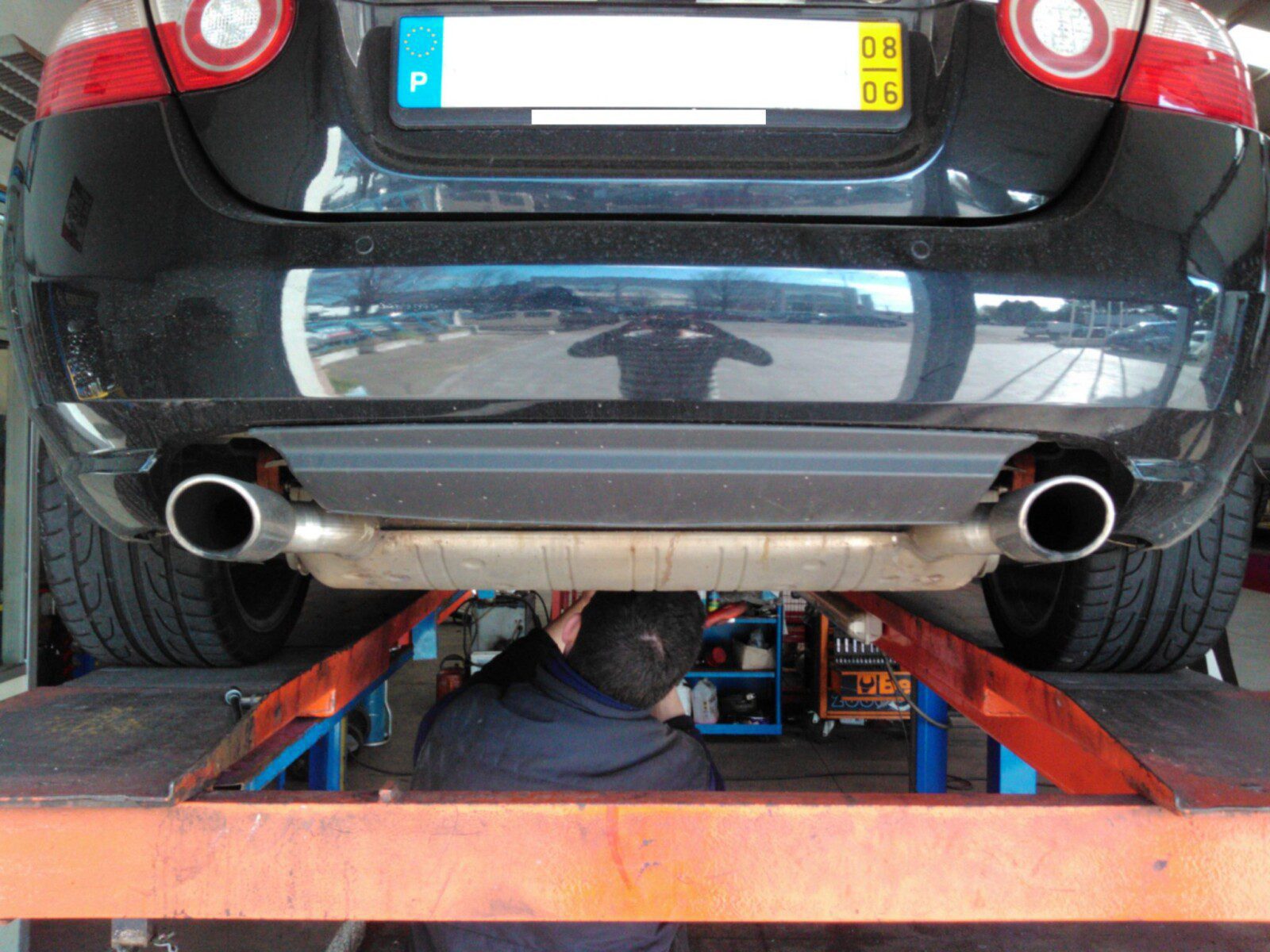 Aplicação de silencioso, com passagem de 2 para 4 ponteiras, num Jaguar XK Cabrio de 2008 na Imporfase na Maia, veja o resultado em baixo.